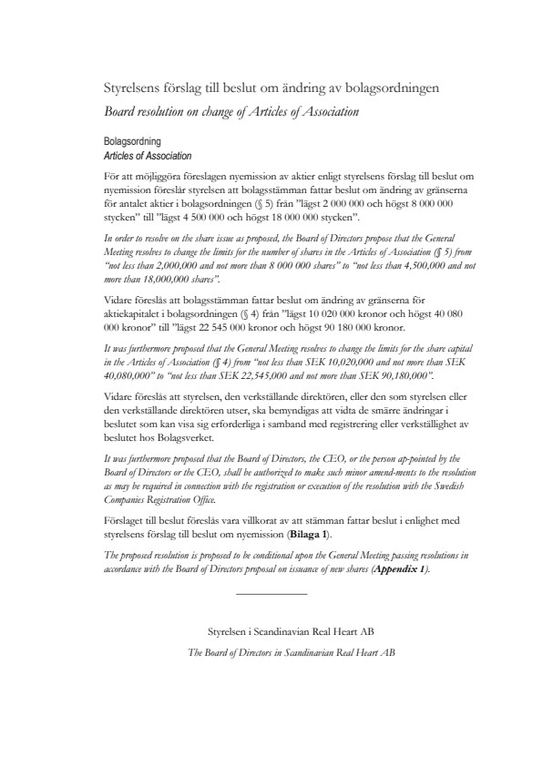 Styrelsens förslag till beslut om nyemission av aktier, bilaga 1